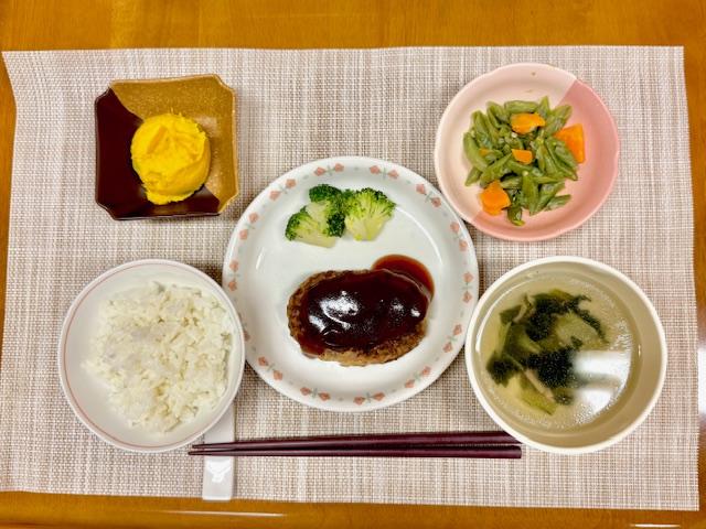 ハンバーグは人気メニューです。副菜も彩りよく楽しいお食事になりました。