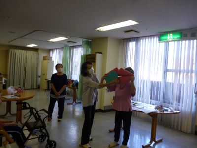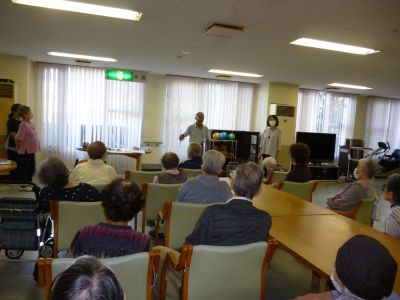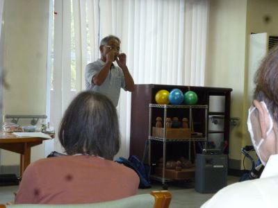 途中、入居者の皆さまに「巻葉笛(まきばぶえ)」の体験をしていただきました。