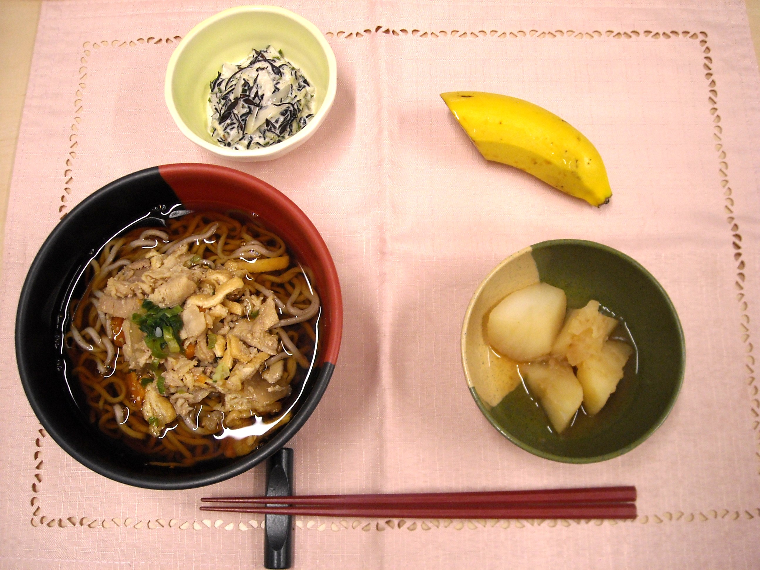 けんちんそばは、豚肉・大根・人参などと、具だくさんでした。