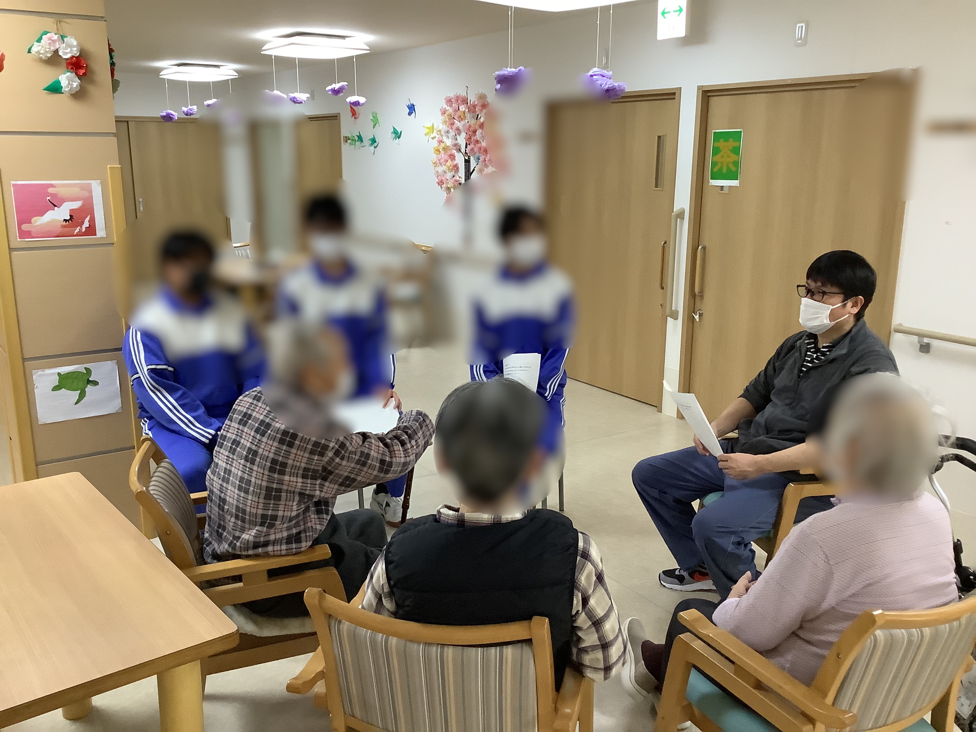 入居者様も中学生とお話をすることで笑顔が溢れ、話が止まらない場面も多く