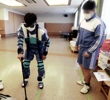 高齢の方の身体状況を体験できる装具を装着して歩いたり、車椅子の体験をしました。