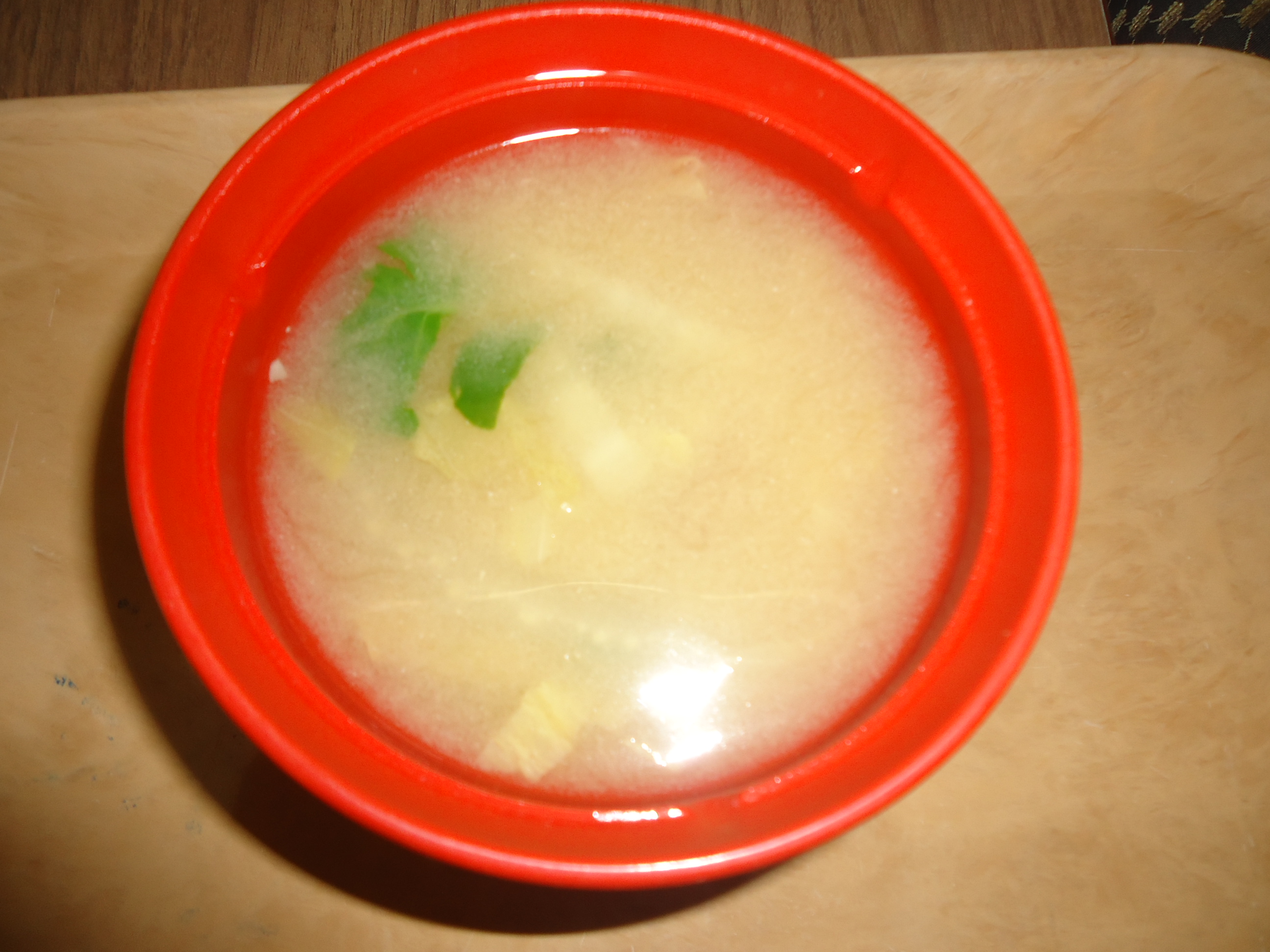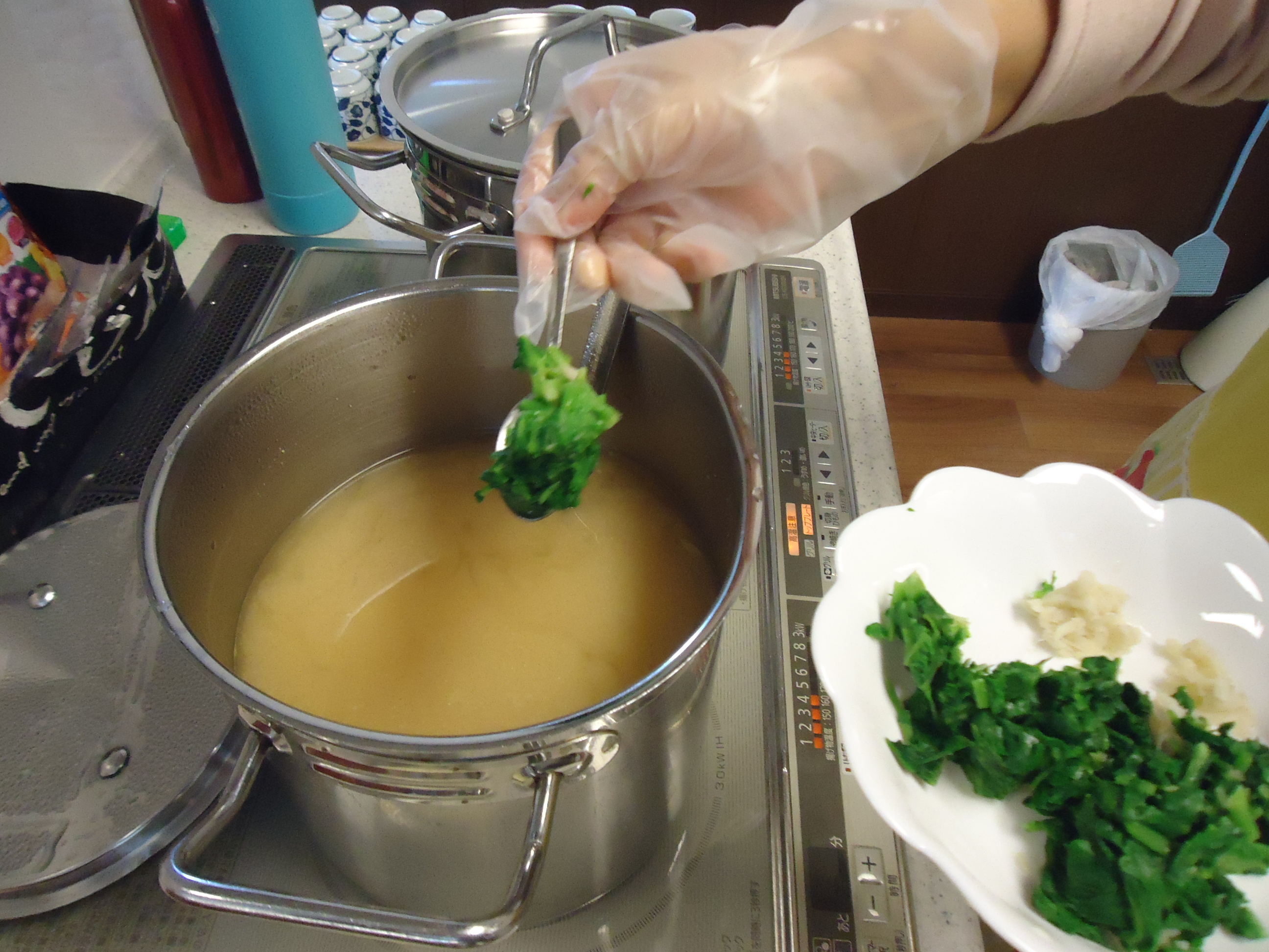 間引きした大根は、本日の昼食の味噌汁の具として提供させていただきました。
