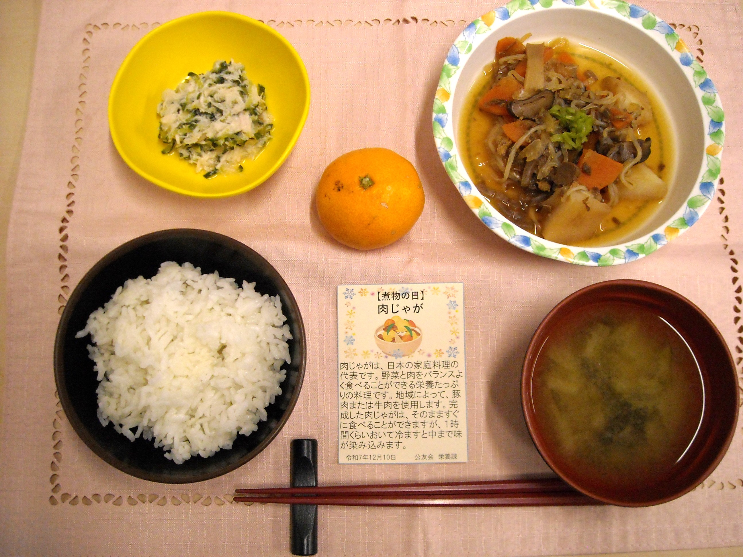 肉じゃがは、すきやきの味付けで少し甘めになっていました。