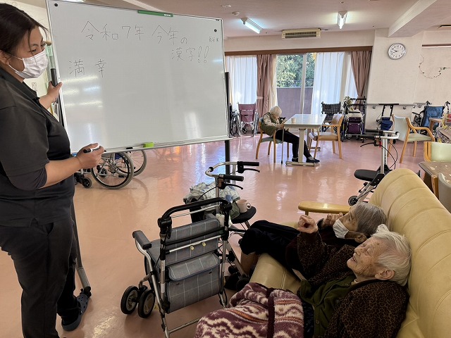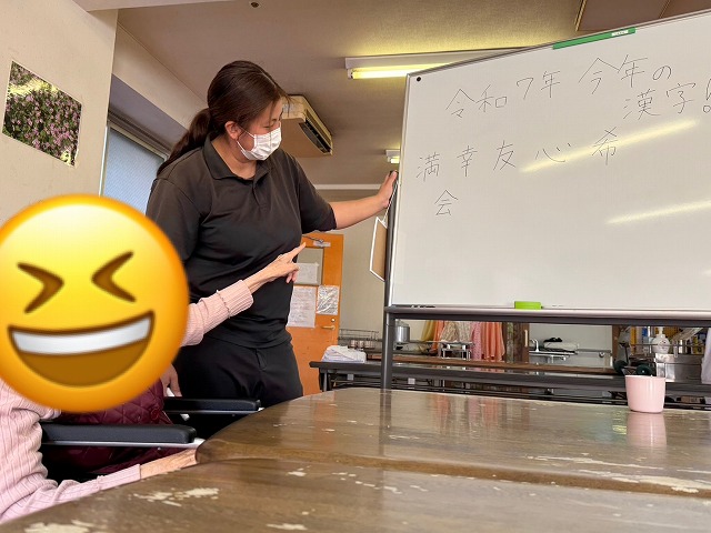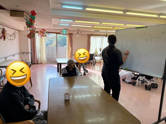 「今年の漢字を当てよう!!」と朝から皆さんと一緒に