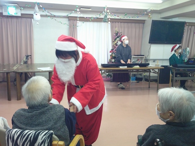 職員とサンタさんとトナカイさんによる演奏を