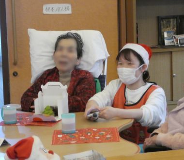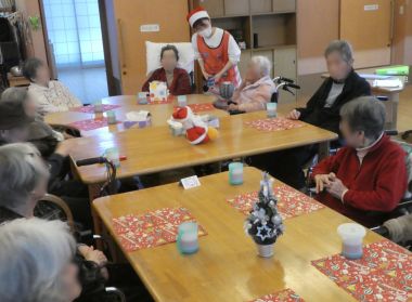 サンタの仮装もして笑顔いっぱいのクリスマス会&誕生日会でした。