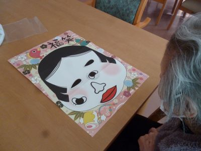 新年を迎えた今日は、入居者の皆さまと一緒にカルタや福笑いを楽しみながら、