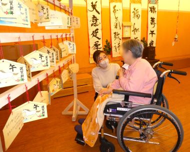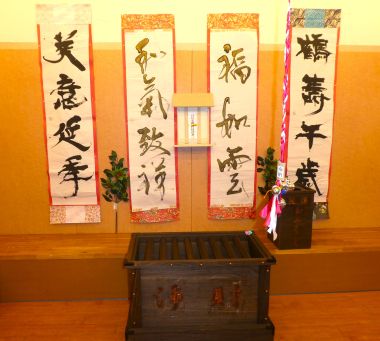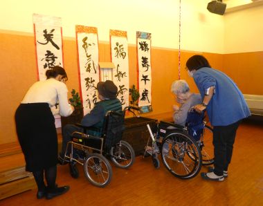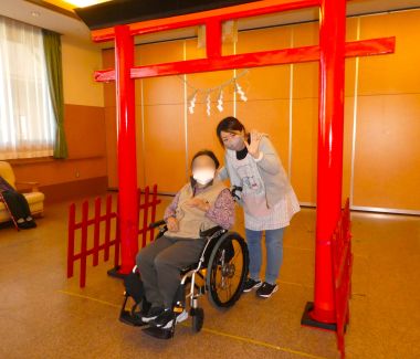 入所者様、利用者様に初詣気分を体験していただく為、施設内に「しあわせ神社」を準備しました。