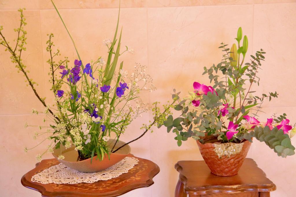 ケアホームしあわせでは、今月も地域のボランティアの方がお花を生けに来てくださいました。