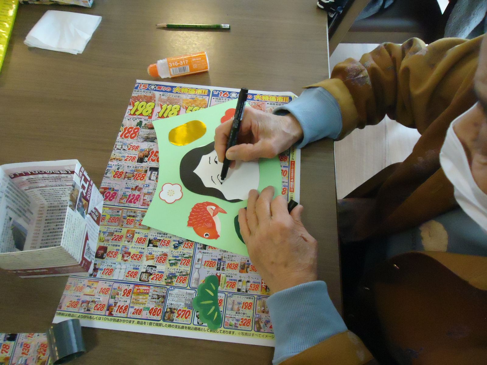 本日は工作の時間に『おめでた飾り』をつくりました。