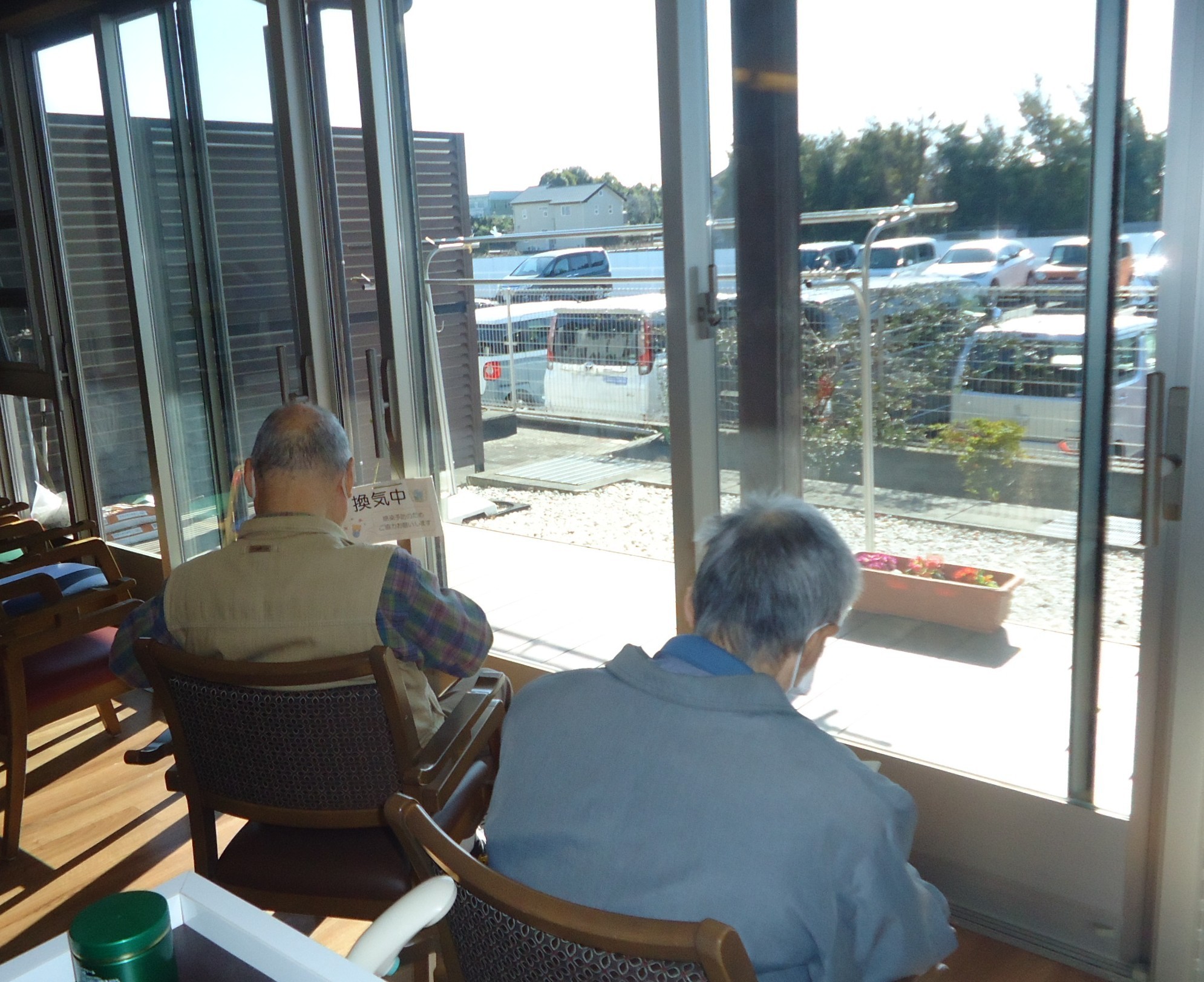 窓際はひなたぼっこに絶好のポジションです。本を読んだり、うとうとしながら過ごされています。