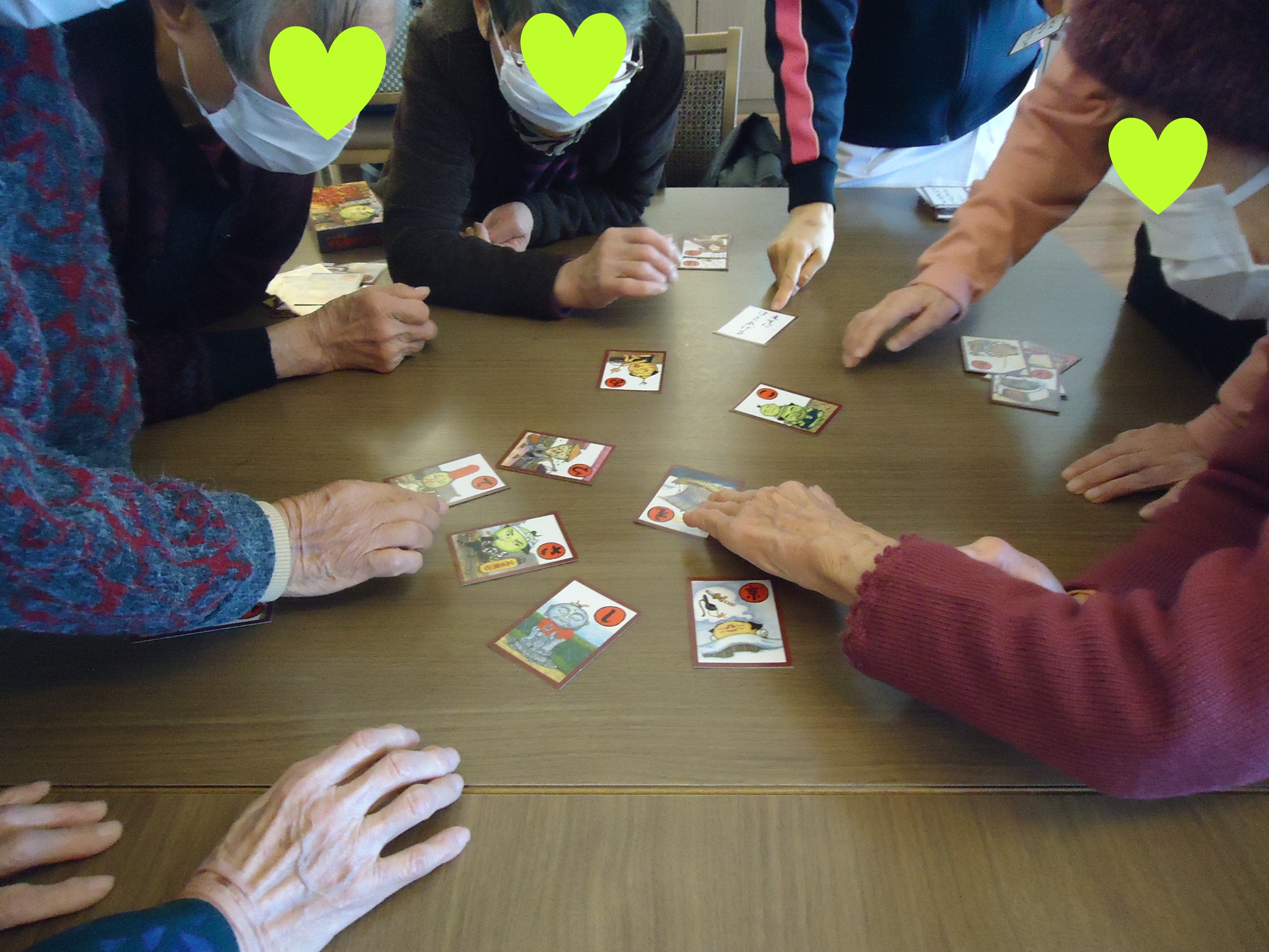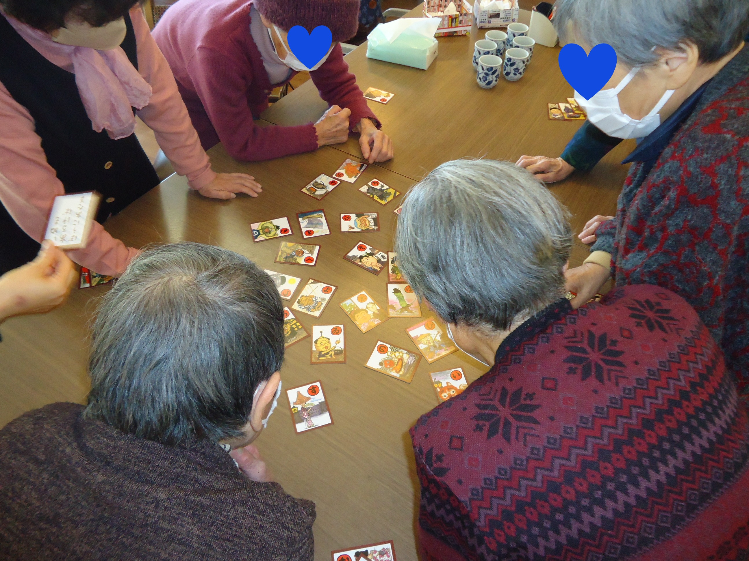 その一方で、カルタとりに興じる利用者様達もいらっしゃいました。