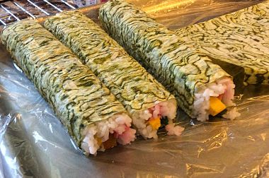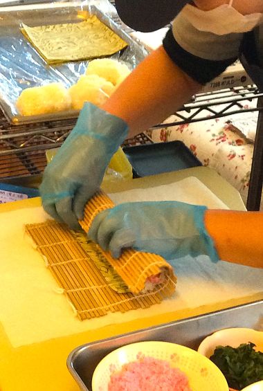 鬼は午後やってくるという情報があり、まずは節分恒例の太巻きで腹ごしらえ!目の前で巻いてくれた太巻きを、皆で美味しくいただきました。