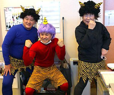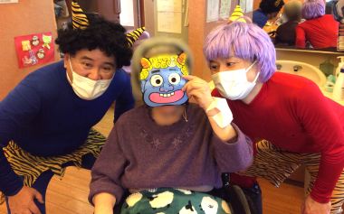 昨日は節分という事で、ケアホームにも3匹の鬼👹がやってきました。