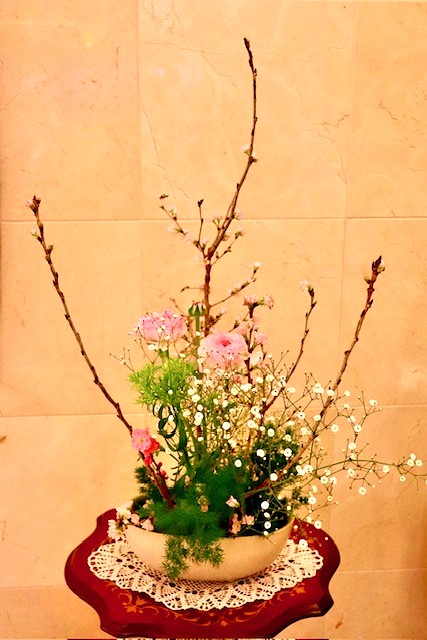 ケアホームしあわせでは、今月も地域のボランティアの方がお花を生けに来てくださいました。