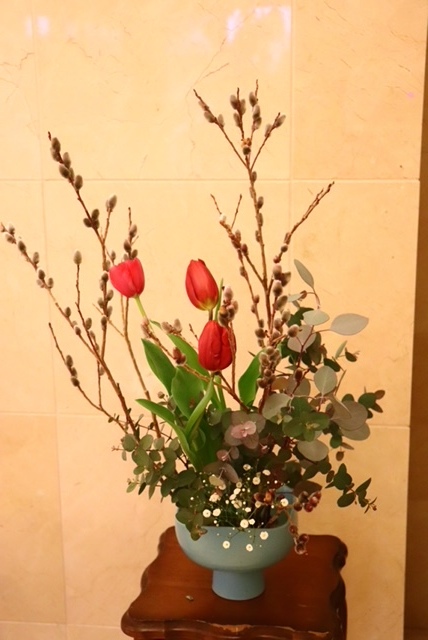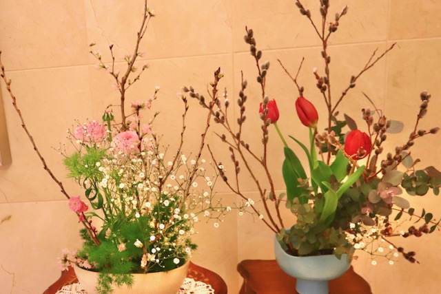 枝ものの力強さとやさしい花の色が静かに春の始まりを告げます。