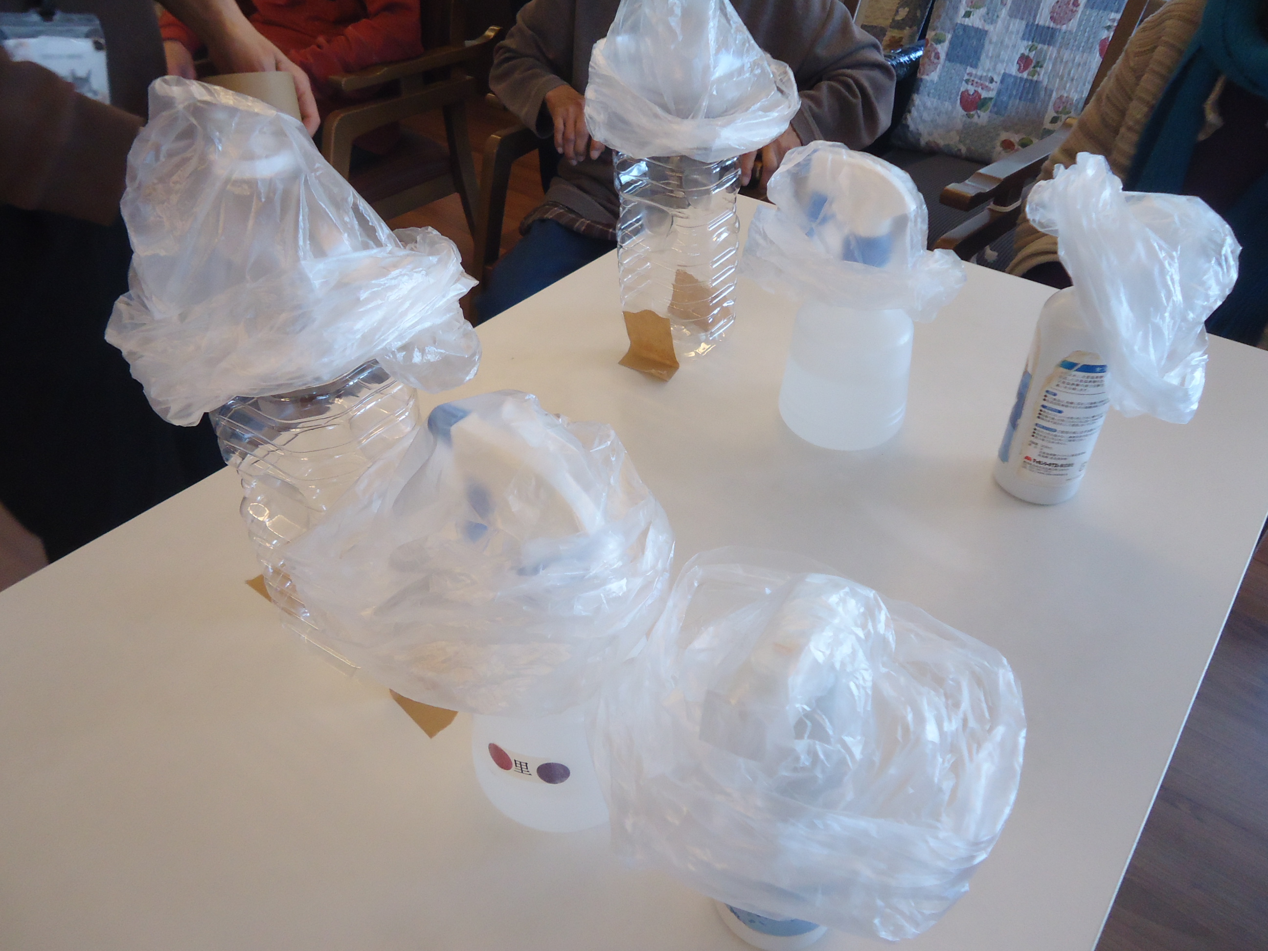 うちわで仰いでビニール袋を外します。