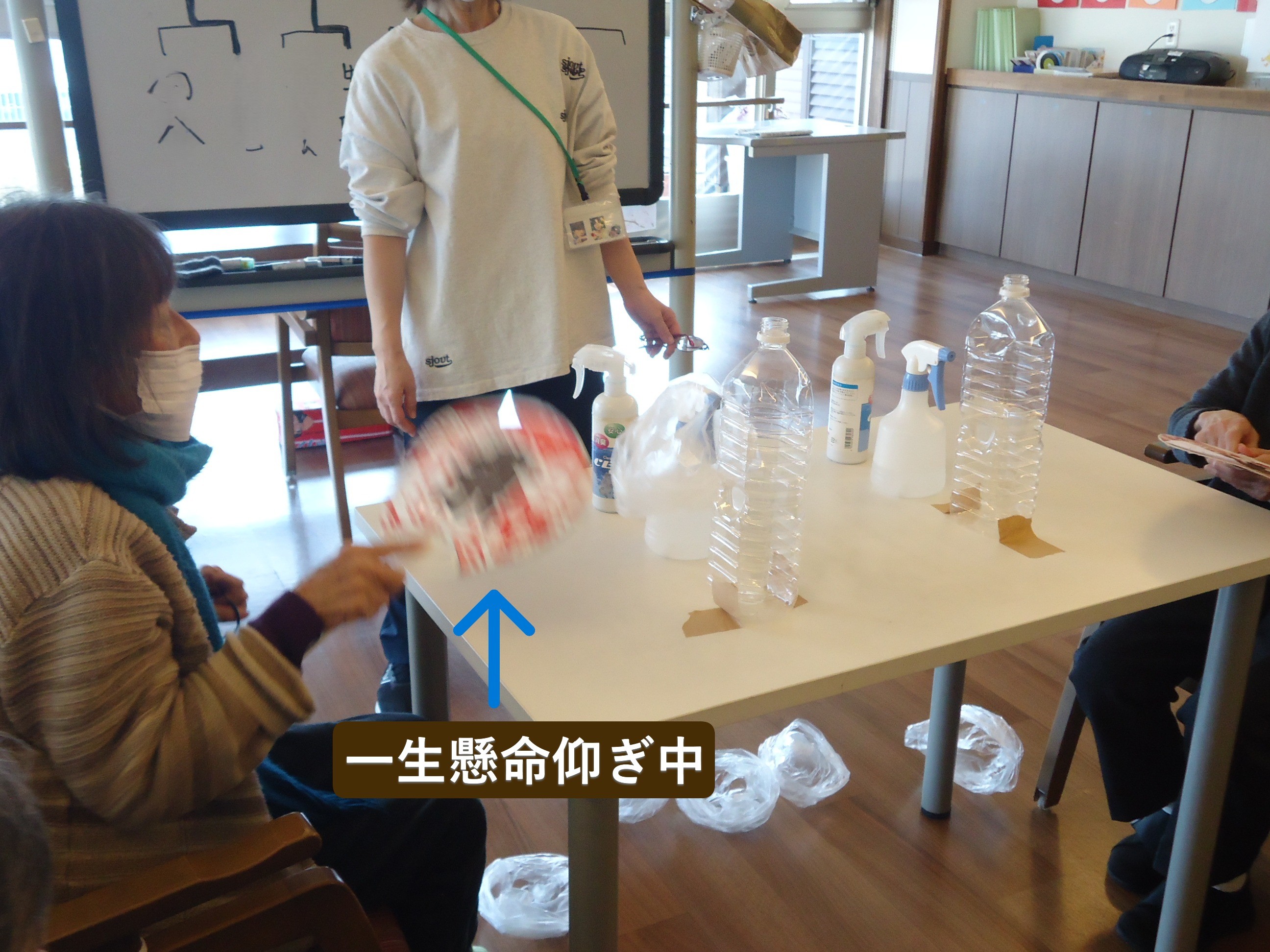 本日のレクリエーション(うちわ仰ぎ)