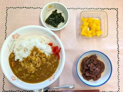 本日のカレーは、大豆が入り少し珍しいカレーでした。