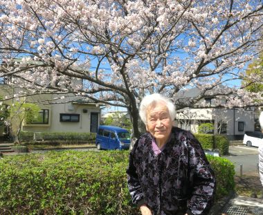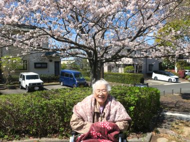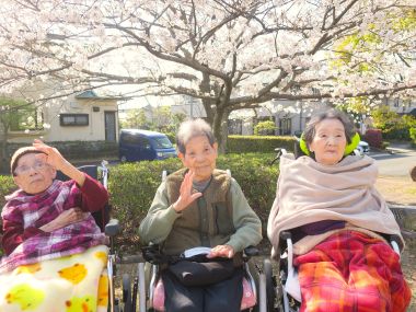 綺麗に咲いた桜をバックに記念撮影。皆さん綺麗だね~!と大喜びでした。