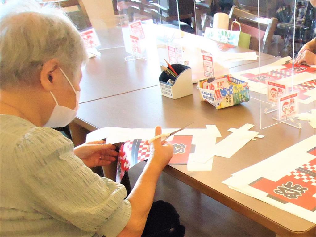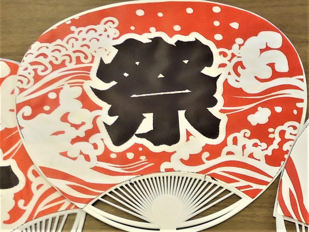 夏祭りの準備で皆様と一緒に団扇や飾りを作りました。。