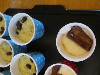 チョコレートや甘納豆入りの蒸しパンが出来上がりました。