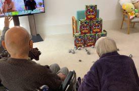 豆の代わりに、丸めた新聞紙を鬼に当てました。